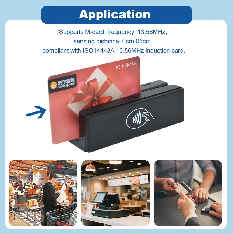 3. Read magnetic card, all three rail support two-way charge Magnetic card 1, 2, 3 track is optional